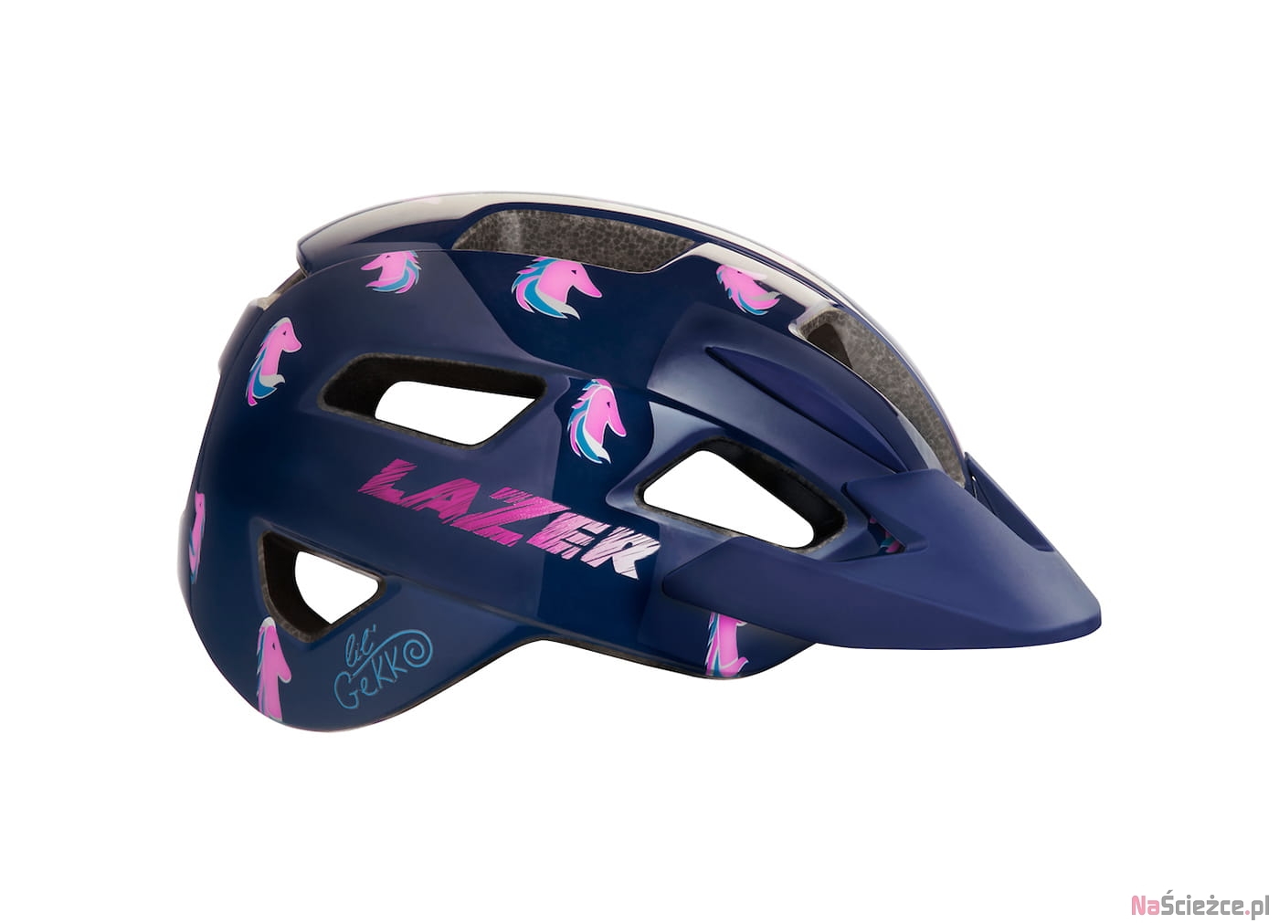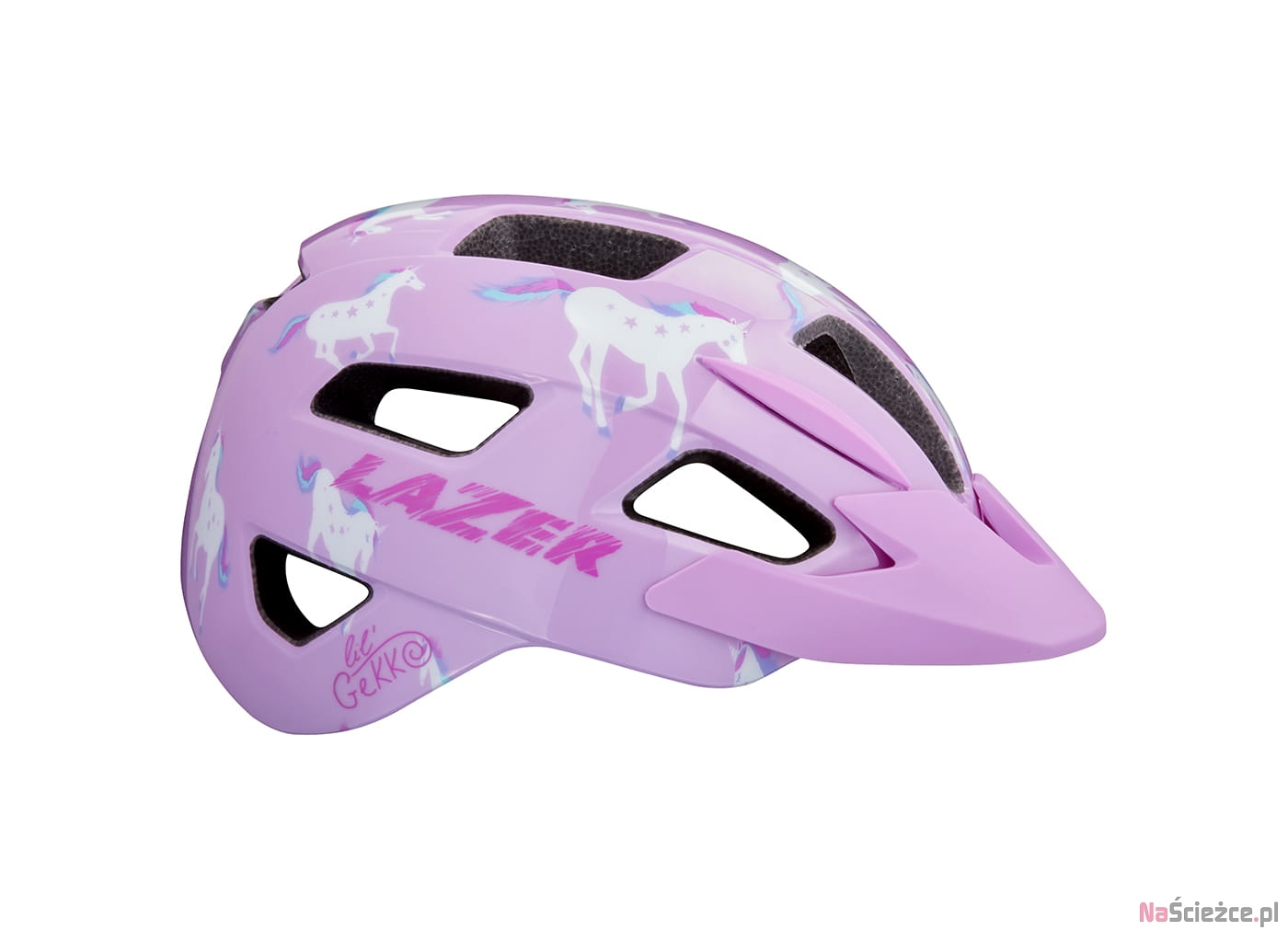 Inspirowany kaskami MTB dla dorosłych,model Lazer Lil'Gekko zapewnia dodatkową osłonę i ochronę boków oraz tylnej części głowy dziecka.System mocowania Lazer Autofit® automatycznie dopasowuje się do głowy przyspieszając i ułatwiając wkładanie kasku a klamra Lazer Comfort Buckle mieszcząca się pod uchem zapobiega przytrzaśnięciu skóry na podbródku podczas zapinania paska.