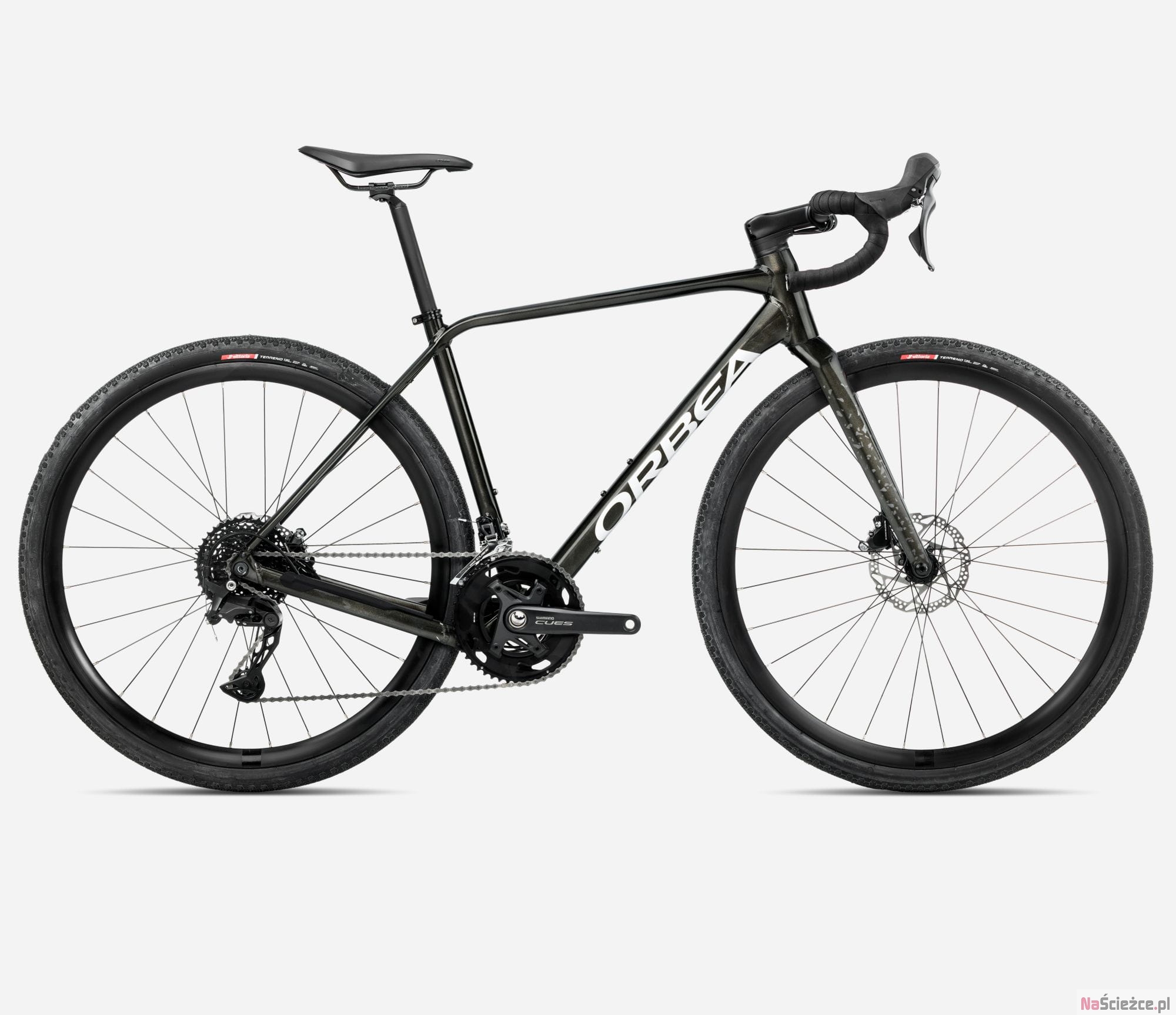 - Szerokie opony gravelowe – pewna przyczepność na zróżnicowanych nawierzchniach.